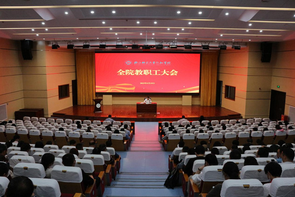 4月19日下午,学院召开学习贯彻习近平新时代中国特色社会主义思想主题教育动员大会,深入学习领会中央、省委以及校党委对主题教育的各项要求,对学院主题教育工作进行动员部署。会议由学院党委书记刘星喜主持,党政班子、中层干部和全体教职工参加会议。