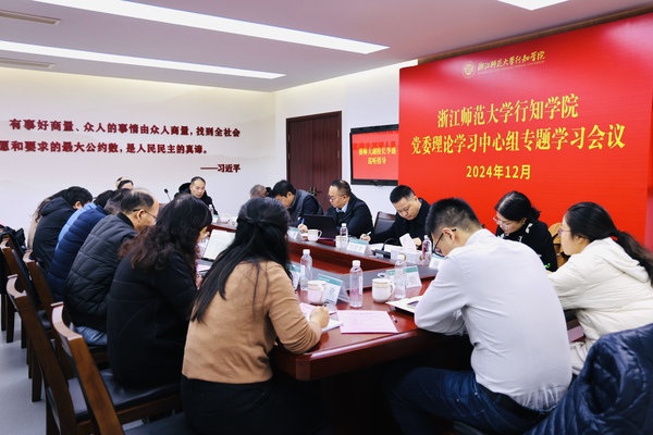 12月17日下午,学院党委理论学习中心组来到全国先进基层党组织——兰溪市灵洞乡西山寺村,在其总部大楼三楼会议室举行了专题学习会。会议深入学习贯彻习近平总书记关于乡村全面振兴的系列重要讲话精神及新时代马克思主义理论研究和建设工程的相关指示精神。浙江师范大学副校长李盛出席并巡听指导。学院党委理论学习中心组成员及联学单位设计艺术学院班子成员参加会议。会议由党委书记刘星喜主持。