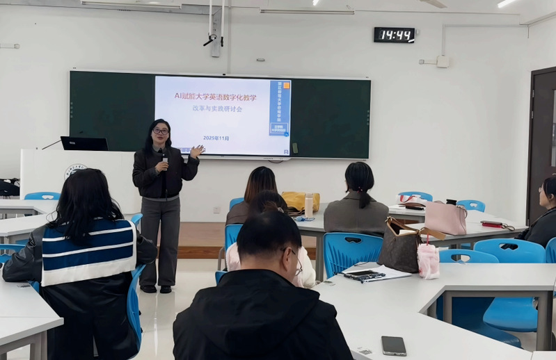 11月19日下午,大学英语教学部成功举办了一场“AI赋能下大学英语数字化教学改革与实践探索”为核心主题的教研活动,全体教师以教研为桥梁,紧扣AI技术与大学英语教学的深度融合趋势,共同探索教学提质的新路径。研讨会上,潘孝泉、邵艳春两位教师先后就教学改革项目进行了专题汇报。汇报聚焦于项目目标、实施举措与改革成果,系统分享了混合式教学改革的推进路径、AI技术融入课内外教学的设计思路,以及借助多元AI工具优化课堂互动的实践经验,并详细阐述了数字化教学资源建设的相关成果与未来规划。本次研讨为大学英语数字化教学改革的进一步深化奠定了坚实的基础。此次教研活动紧扣教学核心、贴合改革实际,既展现了大学英语教学部深耕教研的务实作风,也为教师探索AI与学科教学融合路径搭建了平台,助力教学质量稳步提升。