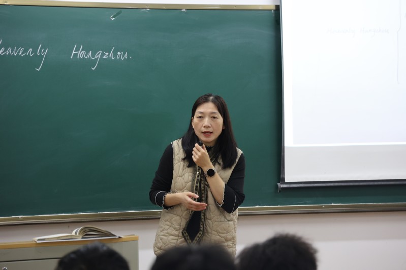 考勤检查结束后,各巡察小组分赴指定教室,观摩多门公开课教学。授课教师充分运用智慧教学平台等现代教学工具,设计了实时答题、随堂测试、线上拓展等多样化教学环节。其中,曹立勤老师的《跨境电商交际英语》依托真实贸易案例设计教学,通过小组合作模拟询价、对话等实操场景,课件制作精良,专业词汇讲解结合案例分析,帮助学生深化理解;袁敏老师的《大学英语(三)》课前布置思维导图绘制任务,引导学生梳理课文结构,课堂以“威尼斯与杭州”对比设问激活兴趣,板书清晰、节奏明快,师生互动自然;在魏晓彤老师的《现代汉语》课程中,深度运用微助教平台,通过该平台发布了一系列与课程内容紧密相关的题目,实时收集学生的答题反馈,精准掌握学生对知识点的理解程度。根据学生的答题情况,魏老师及时调整教学节奏,对学生普遍答错的知识点进行详细讲解和拓展。各公开课充分展现了“以学生为中心”的课堂生态重构成效,为全院教师提供了可借鉴的智慧教学实践范例。