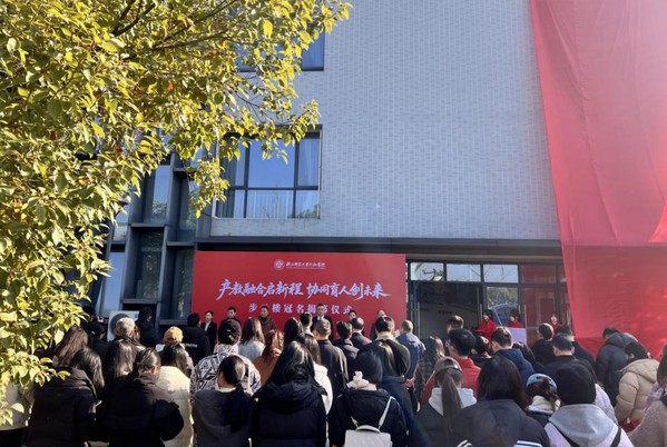 陈英男在致辞中代表永康市工商联,向步阳集团的慷慨捐赠与行知学院的产教融合成果致以敬意与祝贺。他指出,步云楼冠名不仅是步阳集团社会责任的体现,更是企业家情怀的生动诠释,必将激励学子奋进、引导更多企业关注教育。他强调,双方合作是校企“强强联合”与“双向奔赴”的实践典范,精准契合产业升级与健康消费趋势,为“教科人一体推进”提供了鲜活样板。陈英男表示,工商联将继续发挥桥梁纽带作用,积极推动校企深度对接,构建“企业出题、高校解题、市场阅卷”的协同创新生态,助力更多永康企业与高校开展全方位合作,共同服务地方高质量发展。