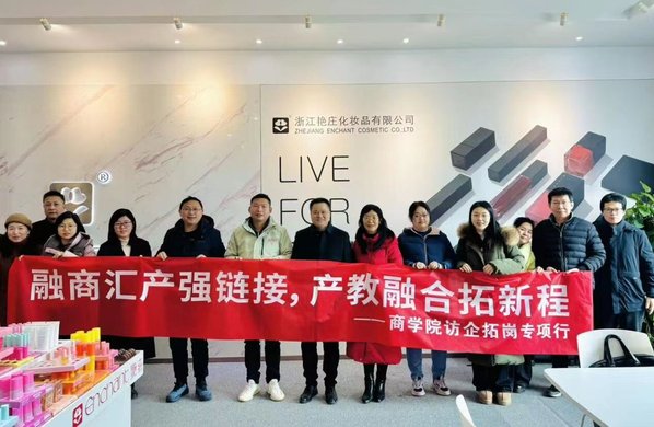 调研组先后实地走访了浙江艳庄化妆品有限公司和浪莎针织有限公司两家知名企业。在浙江艳庄,双方重点围绕企业品牌建设、市场营销、管理运营等板块的人才配置现状与需求进行了深入交流。在浪莎针织,刘星喜一行与公司董事长翁荣金等企业负责人,就传统制造业数字化转型背景下的人才培养模式创新展开深度探讨,明晰了产业升级对人才知识结构与实践能力提出的新要求。